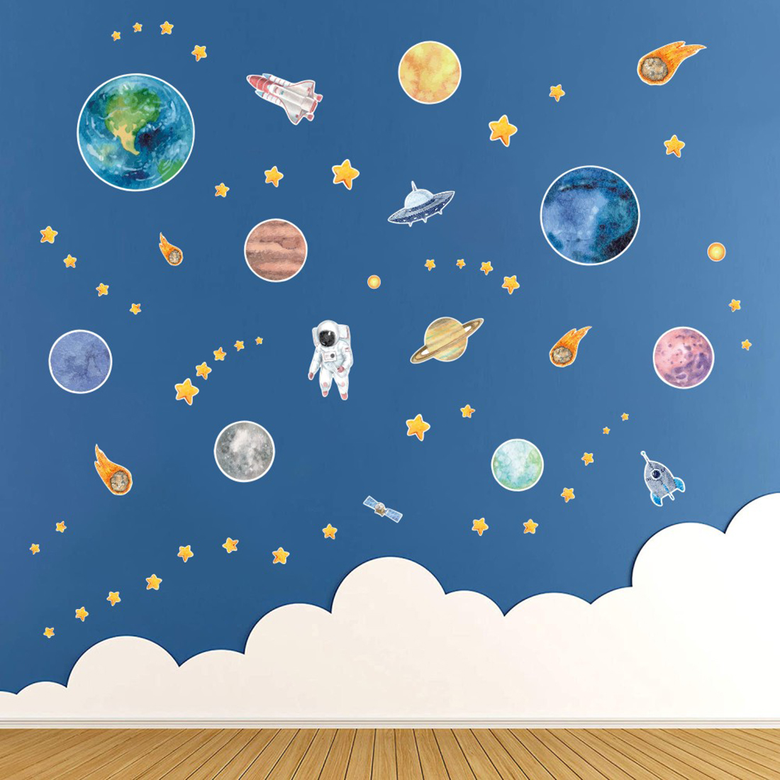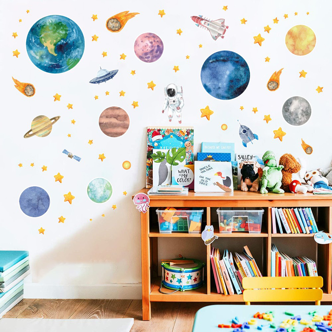 Planets and Stars wall decals are a cool way to decorate your room while learning about planets and star constellations. Kids love to assist with picking the location.